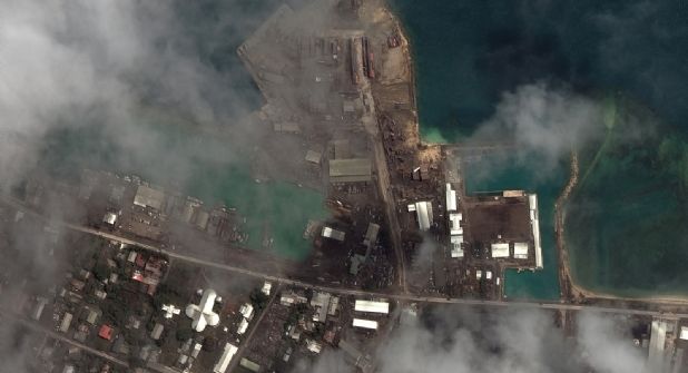 Tonga, conformada por 169 islas y con 105.000 habitantes, permanece cubierta por una densa capa de ceniza y con las costas arrasadas por el embate de las olas, según las imágenes aéreas tomadas este martes por los vuelos de reconocimiento.