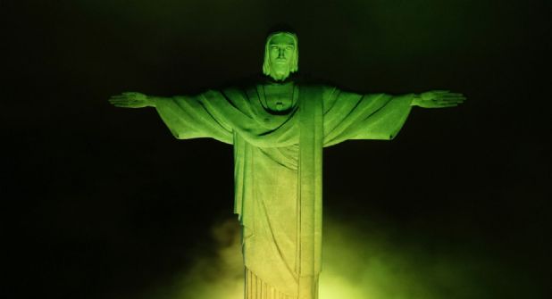 La estatua que corona el cerro del Corcovado fue iluminada con los colores de la bandera brasileña y de la camiseta de la Canarinha, que Pelé vistió tantas veces en el cercano estadio de Maracaná.