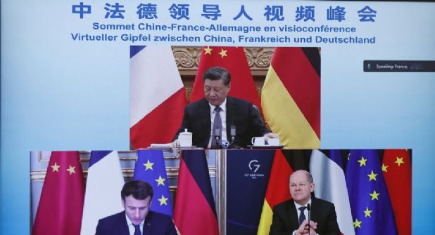 El presidente francés, Emmanuel Macron, y el canciller alemán, Olaf Scholz, mantuvieron hoy una videoconferencia con Xi, en la que los tres dirigentes trataron los esfuerzos internacionales, "incluyendo el papel de las sanciones, a fin de llegar a una solución diplomática".
