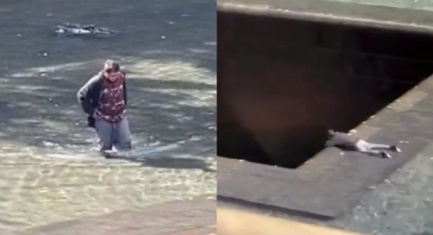 El hombre, que denotaba cierta consternación, recorrió varios metros entre el agua hasta que llegó a la fosa, donde se arrojó a más de nueve metros de altura.