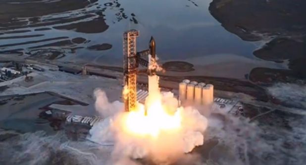 El despegue del Starship sobre su enorme propulsor Super Heavy, de 33 motores Raptor, se llevó a cabo en Boca Chica (Texas) alrededor de las 7:03 hora local.