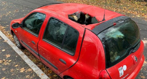 Estrasburgo. – Un automóvil Renault Clio fue impactado por un presunto meteorito y su techo quedó destruido en Estrasburgo, Francia.