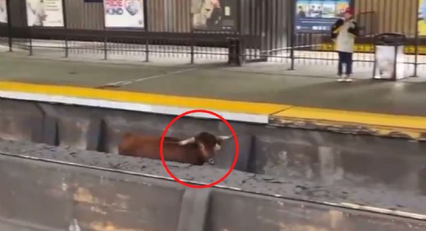 En un video publicado en X (antes Twitter), el toro aparece paseándose tranquilamente por las vías de la estación de Newark, sin causar alarma entre los pasajeros del andén; incluso hay alguno que le enseña una bolsa a modo de capote, imitando a los toreros.