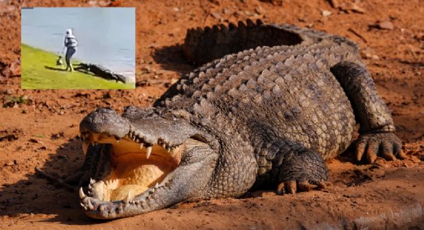 La mujer, identificada como Gloria Serge, se encontraba paseando a su cachorro por el lago alrededor de las 13:00 horas, mientras, desde el agua, se ve como sigilosamente el caimán se aproxima a la horilla del agua.