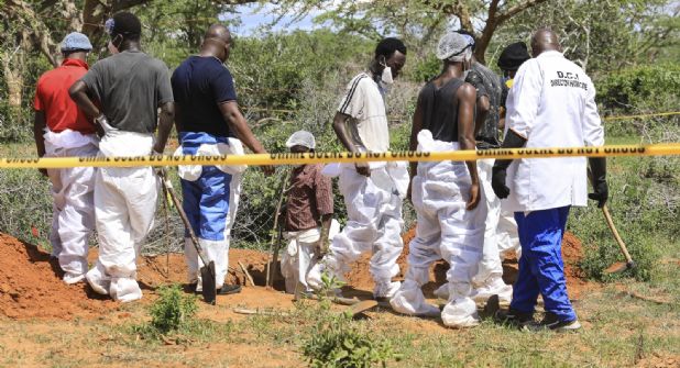 El número total de muertos ahora es de 73, con 26 nuevos cuerpos exhumados el lunes, dijo a la agencia AP el jefe de policía del subcondado de Malindi, John Kemboi.