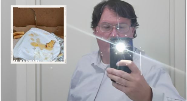 En enero de este año, lo vieron tirar una caja de pizza y acudieron hasta el bote de basura y fue ahí donde pudieron tomar una orilla de pizza sobrante.