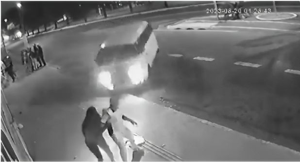 A través de redes sociales se ha difundido un video donde se aprecia cómo la camioneta los embiste y luego choca contra el frente de un comercio.