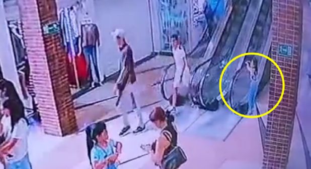 Los videos que se difundieron en las redes sociales generaron una ola de comentarios. En una primera grabación de seguridad, se observa cómo una niña toma la banda de una escalera eléctrica y es elevada hasta el segundo piso, quedando suspendida en el aire.