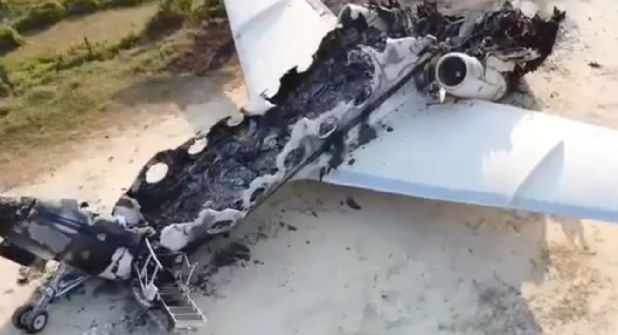 Hernández Lárez acompañó la información con fotografías en las que se puede observar el avión en pleno vuelo y, luego, otras imágenes que muestran los restos de la aeronave en llamas en un terreno boscoso.