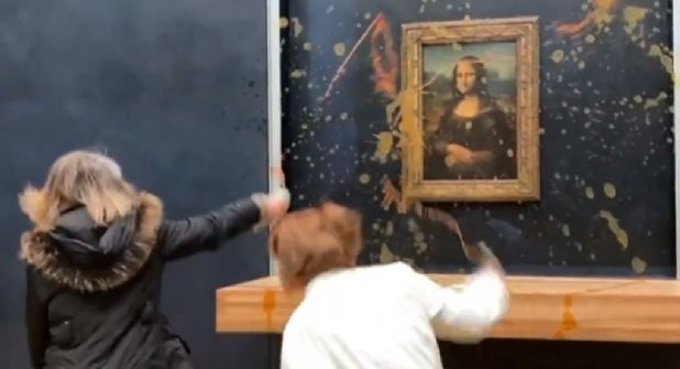 París.- Dos activistas climáticas arrojaron botes de sopa este domingo sobre 'La Mona Lisa' (siglo XVI), la obra maestra de Leonardo da Vinci expuesta en el Louvre, cuyo lienzo original está protegido por una lámina de cristal instalada en 2005.