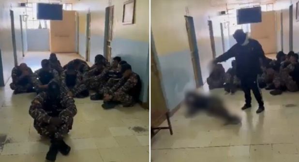 En la grabación, se puede observar como toman a uno de ellos (custodios), y lo amarran del cuello para después entre tres personas subirlo, logrando que este muera ahorcado.