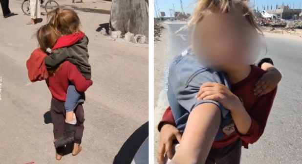 Gaza. – El video de una niña palestina cargando a su hermanita herida en Gaza, se ha viralizado en las redes sociales.