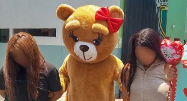 Las autoridades en Lima aprovecharon que era 14 de febrero para vestir a uno de sus uniformados de osita cariñosita, y de esta forma no levantar sospechas.