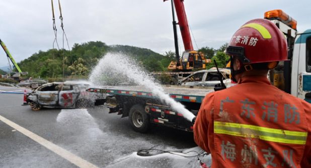 El incidente ocurrió a las 02:10 hora local y afectó a un área de aproximadamente 184.3 metros cuadrados para un tramo de 17.9 metros de largo de la autopista Meizhou-Dabu, donde quedaron atrapados 20 vehículos.