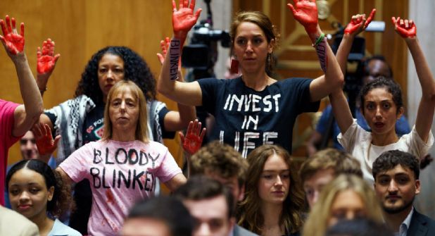 Los manifestantes se sentaron entre el público de la audiencia, detrás de Blinken, y algunos de ellos le gritaron "criminal de guerra" y "carnicero" cuando el secretario de Estado tomaba la palabra, tras lo cual fueron desalojados por la seguridad del Capitolio.