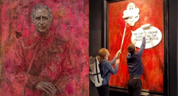 Según confirmó hoy a EFE la dueña de la galería, Catherine Mould, el incidente ha sucedido "cuando (dos activistas del grupo The Animal Rising) han puesto una pegatina sobre (el cristal de) el cuadro" del artista Jonathan Yeo, la primera pintura oficial del monarca desde su coronación.