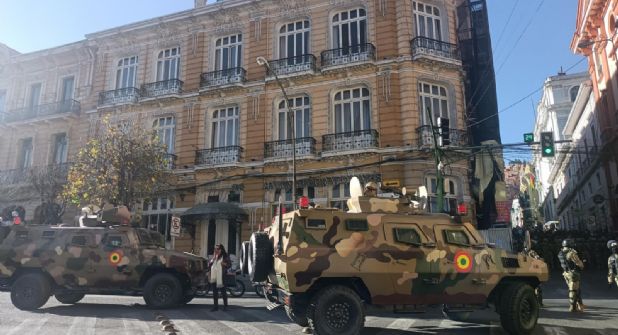 En medio de este intento de golpe de Estado en Bolivia, tanques y militares fuertemente armados tiraron este miércoles las puertas de la sede de gobierno de Bolivia bajo el mando del que hasta hoy era el Comandante General del Ejército boliviano Juan José Zúñiga.