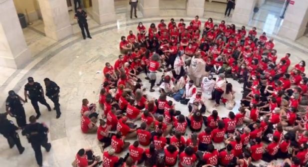 Después de varios avisos para que abandonaran la protesta, la Policía del Congreso empezó a detener a los manifestantes. Este miércoles se esperan numerosas protestas en contra de la presencia de Netanyahu en la capital federal, que ha extremado las medidas de seguridad.