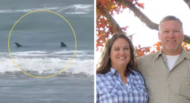 Luego apareció su esposo Cary quien la rescató mientras el animal la perseguía hasta aguas poco profundas.