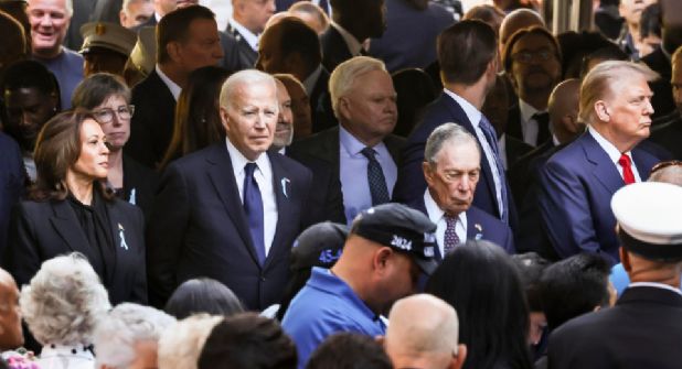 Ambos políticos coincidieron esta mañana en la conocida como ‘zona cero’ del World Trade Center (Nueva York) con motivo del acto conmemorativo por el 23 aniversario del 11-S, el atentado terrorista que se cobró la vida de 3 mil personas en total y es hasta hoy el más grave registrado en la historia de Estados Unidos.