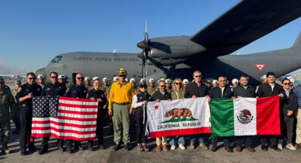 Los Ángeles, California.- Por medio de una publicación en sus redes sociales el gobernador de California, Gavin Newsom dio a conocer el arribo de un equipo de bomberos mexicanos al aeropuerto de Los Ángeles, los cuales se sumarán a los más de 14 mil elementos que enfrentan los incendios forestales en aquella región de la unión americana.