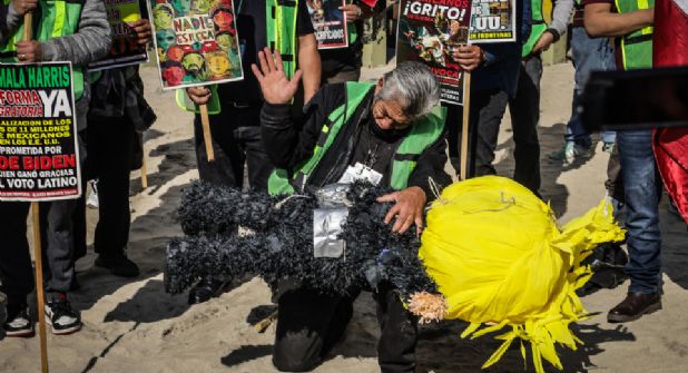 Las manifestantes se reunieron en la zona de la playa, donde el muro fronterizo desemboca en el mar del océano Pacífico, un lugar muy representativo para la población migrante, en donde los activistas también llevaron una piñata con las características de Trump, a la que de manera simbólica le dieron unas nalgadas en alusión "a su actitud de niño malcriado", dijo Sergio Tamai, director de la organización Ángeles Sin Fronteras.