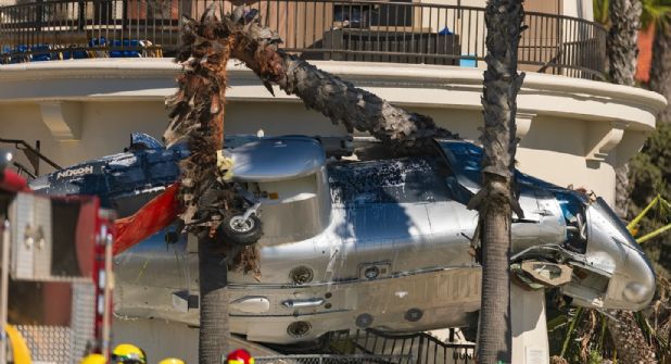 El accidente fue captado por un video grabado por un asistente a la playa mostró un helicóptero a baja altitud el sábado sobre la zona. A medida que avanza el video, el helicóptero se descontrola y y gira varias veces hasta que cae en picada, estrellándose en la cuadra 21500 de la Pacific Coast Highway. Varias palmeras pudieron amortiguar el desplome.