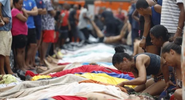 Los cuerpos fueron depositados a primera hora de la mañana en una hilera de al menos 50 personas, tendidas lado a lado, en la plaza São Lucas, en Penha.