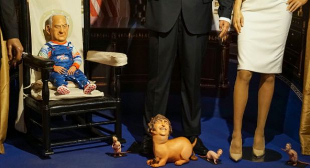 Madrid.- Un artista chileno intervino de forma efímera el Museo de Cera de Madrid para colocar, al lado del presidente estadounidense, Donald Trump, en el Despacho Oval una figura del primer ministro israelí, Benjamín Netanyahu, vestido del muñeco diabólico Chucky con un perro faldero con la cara del argentino Javier Milei.
