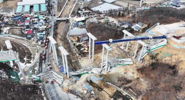 El incidente se produjo alrededor de las 9:49 hora local de hoy en un puente en construcción que conecta la sección Ansan-Yongin de la autopista Seoul-Sejong, cuando 50 metros de vigas de acero se desplomaron.