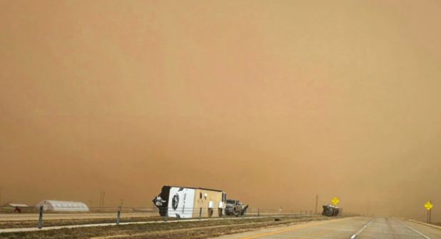 Amarillo, Texas.- Automovilistas que circulaban por las autopistas de Amarillo y Lubbock fueron cubiertos por una nube de polvo y arena que les impidió la visibilidad provocando accidentes y caos cerca de las 09:00 AM.