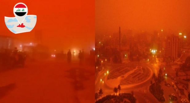 La nube de polvo y tierra amarilla cubrió la ciudad de Nayaf, mientras una tormenta de arena azotó el centro y el sur del país, generando imágenes que se viralizaron pronto alrededor del mundo.
