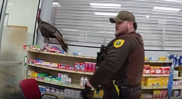 El Departamento de Policía del Condado de St. Joseph publicó mediante sus redes sociales, un video de la persecución del pavo, mismo que fue extraído de las cámaras de seguridad del establecimiento.