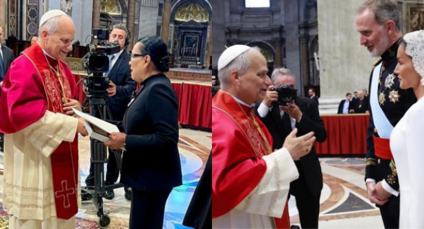El Papa saludó a los reyes de España, Don Felipe y Doña Letizia, y el monarca español se entretuvo hablando varios minutos en español con León XIV en un tono cordial.