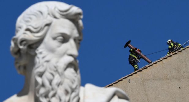 Ciudad del Vaticano. - Los bomberos instalaron este viernes la chimenea en el techo de la Capilla Sixtina del Vaticano con motivo del cónclave, que se iniciará el 7 de mayo, para elegir al nuevo papa y por el que saldrá el humo negro o blanco que anunciará el resultado de las votaciones de los cardenales.