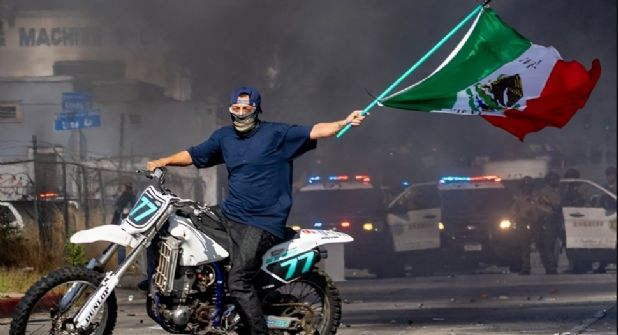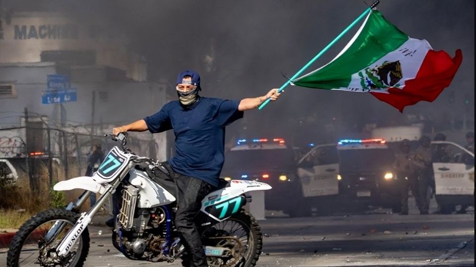 Estados Unidos.- La bandera roja, blanca y verde de México se ha convertido en un símbolo distintivo de las protestas contra las redadas migratorias en Los Ángeles, lo que ha irritado a republicanos y miembros del Gobierno del presidente estadounidense, Donald Trump, que lo califican como muestra de “una invasión”.