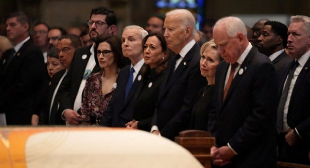Washington, 28 jun (EFE).- El expresidente estadounidense Joe Biden (2021-2025) y la exvicepresidenta Kamala Harris acudieron este sábado al funeral de la legisladora Melissa Hortman y de su esposo, asesinados el pasado 14 de junio.