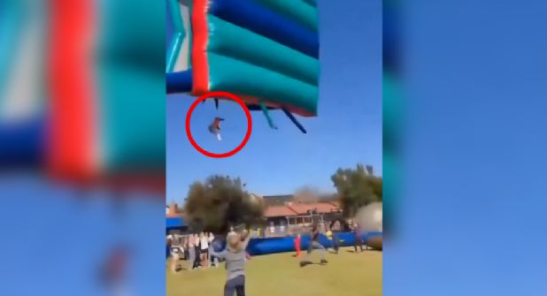 Según testigos, todo ocurrió en segundos. Una ráfaga de viento levantó el inflable “como un paracaídas gigante”, dejando a los menores sin control.