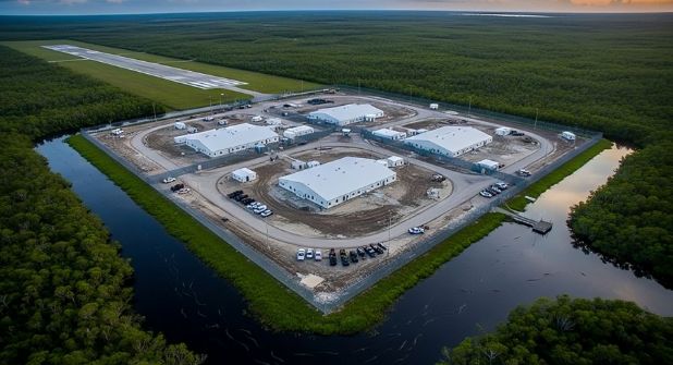 El centro se ubica al suroeste de Miami y tendrá capacidad para albergar más de 3,000 personas. Su construcción se ha completado en casi dos semanas, el tiempo transcurrido desde que el fiscal general de Florida, James Uthmeier, sugiriera el pasado 18 de junio la idea de retener allí a los migrantes.