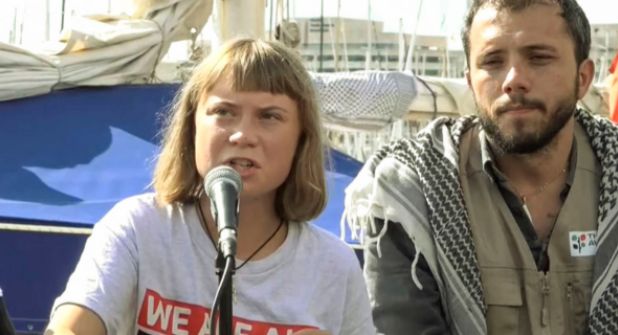 "Esta historia es, también, sobre un levantamiento global, sobre cómo la gente está dando un paso al frente cuando los gobiernos fallan", dijo Thunberg en una rueda de prensa en el Moll de la Fusta de Barcelona, desde donde zarpó este mediodía (tiempo de Barcelona) la flotilla con ayuda para la franja palestina.