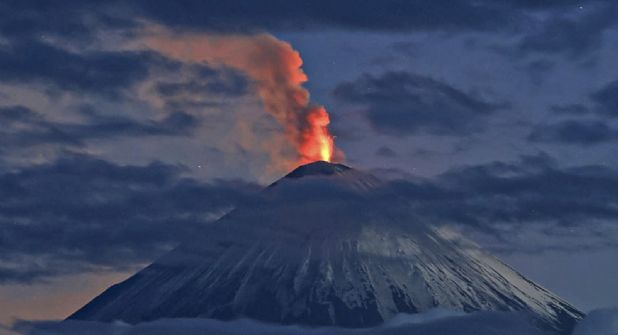 Es particular el caso del volcán Krashenínikov, que empezó a emitir lava por primera vez desde 1463 y estos días ha expulsado columnas de cenizas de hasta 6 kilómetros de altura.