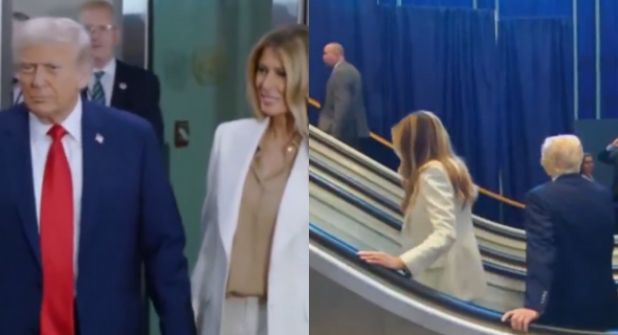 Fue a su llegada al recinto cuando los problemas comenzaron para Donald Trump, pues cuando llegó en compañía de su esposa Melania Trump y ambos pusieron un pie en las escaleras eléctricas del edificio, estas dejaron de funcionar, por lo que los dos tuvieron que subir las escleras de manera común y corriente.