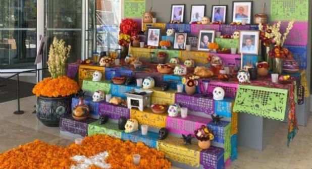 Al subir las escaleras, se encuentra el altar con imágenes y la decoración tradicional, además, en el mismo también se honra a familiares y personas allegadas al personal de los tres museos que no solo murieron por covid, sino por otras razones.