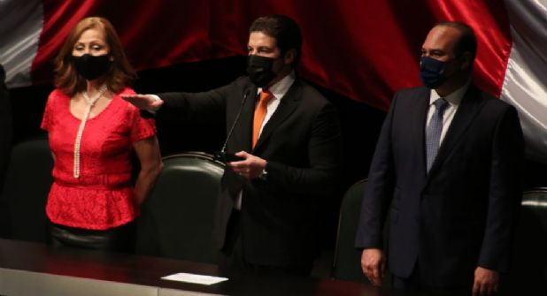 "Protesto sin reserva alguna, cumplir la constitución política de los Estados Unidos Mexicanos y la Constitución de Nuevo León", dijo Samuel García al rendir protesta.