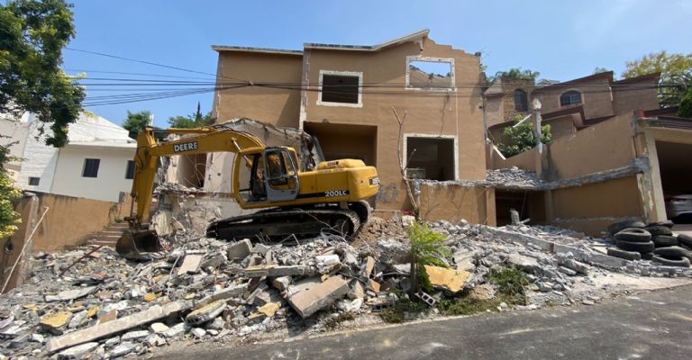 Monterrey.- La casa en la colonia Cumbres en Monterrey, donde hace más de 15 años ocurrió el asesinato de los hermanos de Erika Peña Coss a manos de Diego Santoy comenzó a ser derrumbada.