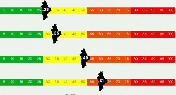 “Tenemos 3 indicadores en color verde, 2 indicadores en color amarillo y 5 indicadores en color rojo, ese puntaje de 61 nos coloca en semáforo naranja”.