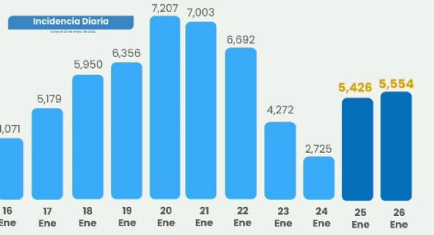 "La constante ha sido que hemos tenido más de 5 mil casos diariamente y nuestro punto más alto fue el 20 de enero con 7 mil 207, vamos a estar evaluando el número de casos", indicó Marroquín.