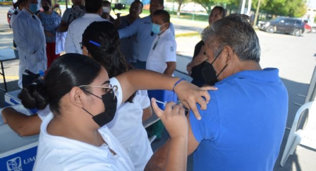 La vacuna aplicada por personal Instituto Mexicano del Seguro Social (IMSS) se ofreció a través de un módulo drive thru que fue instalado en la Unidad Deportiva Alfonso Martínez Domínguez, en la Colonia José O. Martínez.