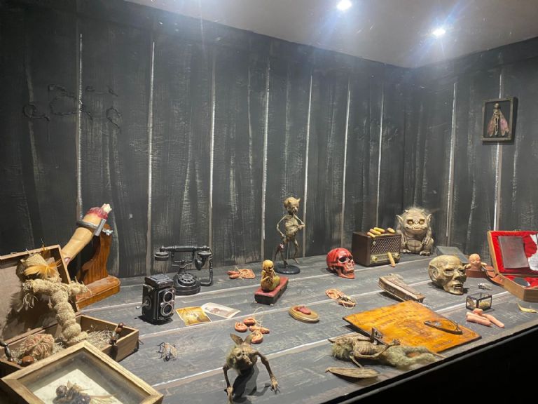 La exposición cuenta con piezas representativas de personajes de terror, como el payaso Eso de “It”, o de “Masacre en Texas”, buscando revivir tus peores pesadillas.