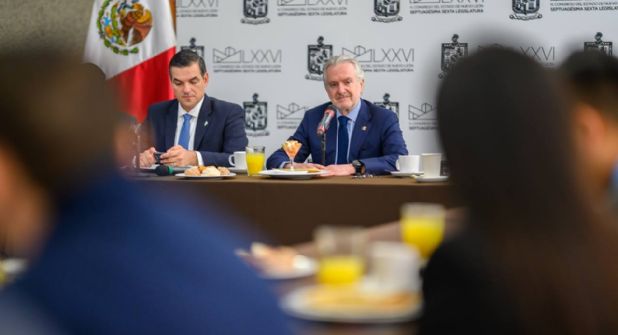 El panista se reunió en privado con los legisladores en la sala Bicentenario del recinto legislativo.
